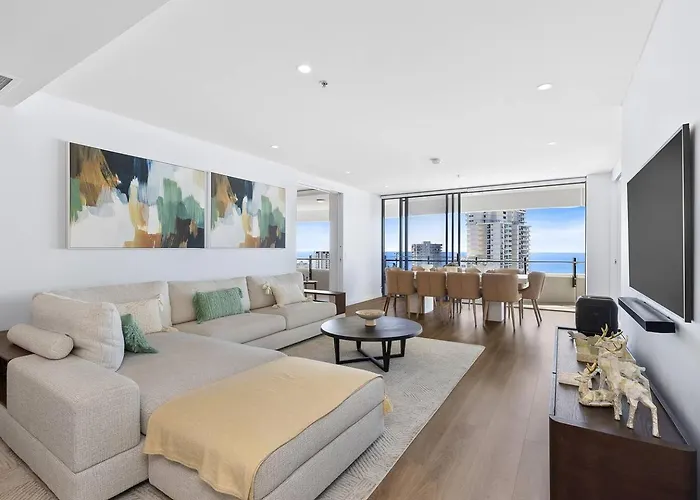 Situated within 5 minutes' walk of Conrad Jupiters Casino, the spacious 100 m² 2202 Luxury The Wave Apartment Gold Coast entices guests with a hot tub and a sauna. The Gold Coast Convention and Exhibition Centre is within a few blocks of the 2-bedroom apartment, while Kurrawa Park is nestled at the distance of just 0.7 km away.